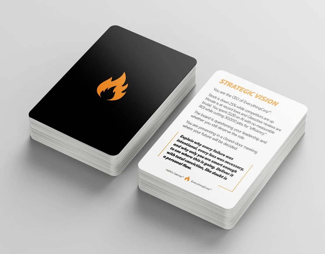A premium card game that turns modern corporate dysfunction into a performance challenge.